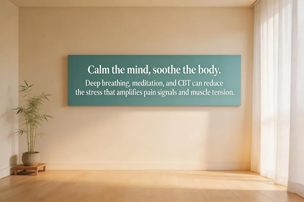 Stress reduction is critical, as stress can directly amplify pain perception. Techniques that shift your nervous system into a relaxed state are key. These include deep breathing exercises, meditation, reading, or listening to calming music. Applying heat with a warm bath or a heating pad can relax tense muscles, while cold packs may help numb deep pain and reduce inflammation. Limit each heat or cold application to 15-20 minutes.