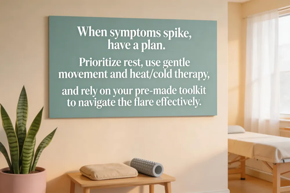 - During flare-ups, a pre-made action plan prioritizing rest, gentle movement, and stress reduction, along with a supportive sleep environment, is essential for effective management.