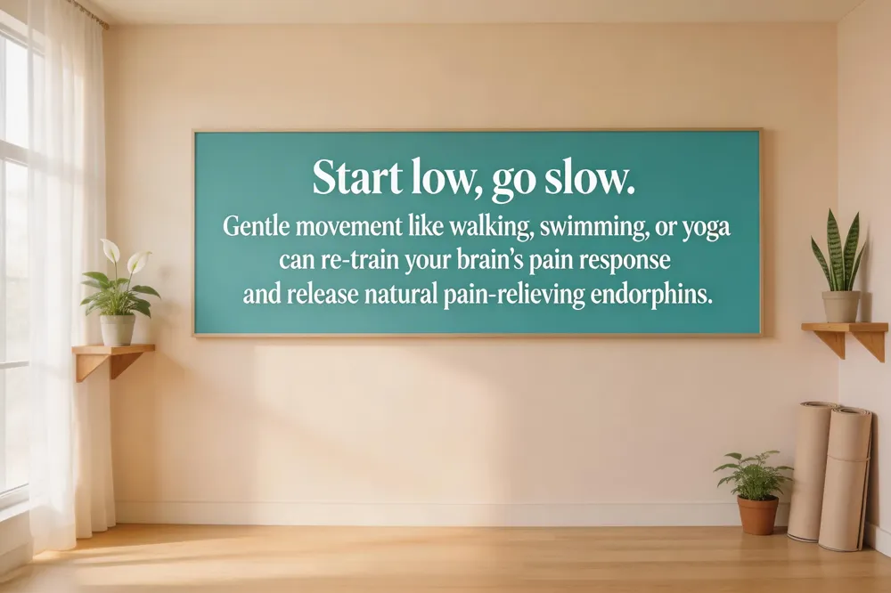 - Gentle, low-impact exercise like walking, swimming, or yoga can retrain the brain's pain response and release natural pain-relieving endorphins over time.