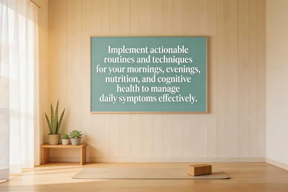 | Morning Routine | Gentle stretches in bed, balanced breakfast, hydrate first thing. | Reduces stiffness, stabilizes energy. |