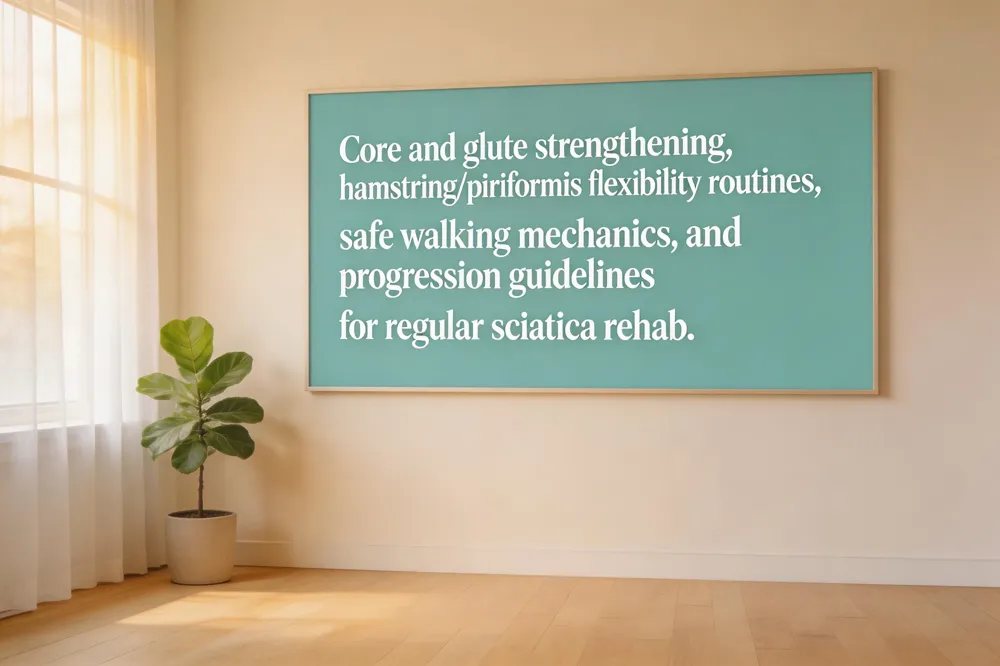 Effective sciatica management combines core‑and‑glute strengthening, hamstring and piriformis flexibility, and safe walking habits.