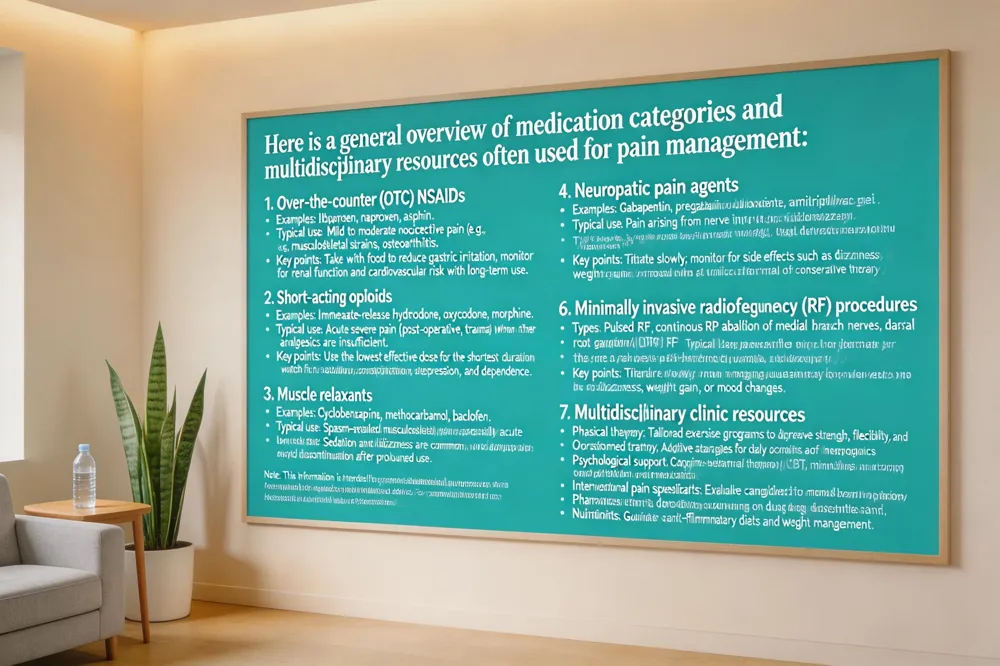 Severe sciatica may require short‑acting opioids such as oxycodone or hydrocodone, but these are used sparingly under close supervision because of dependence risk. Most patients start with OTC NSAIDs (ibuprofen, naproxen) to curb inflammation, adding prescription muscle relaxants for spasm relief and, when nerve pain persists, low‑dose neuropathic agents like gabapentin or tricyclic antidepressants. Topical lidocaine or capsaicin creams (e.g., Bengay Lidocaine, Penetrex) provide localized numbness and are the preferred first‑line skin treatments. For patients who do not improve, minimally invasive options such as pulsed radiofrequency (PRF) and radiofrequency ablation disrupt pain signals without the larger tissue damage of surgery. Multidisciplinary specialty centers—University Spine and Pain Center, California Pain Institute (Inglewood, Torrance), and California Sports & Spine Institute—offer coordinated care that blends medication management, interventional injections, advanced radiofrequency techniques, and regenerative therapies, ensuring each sciatica patient receives a personalized, evidence‑based plan.