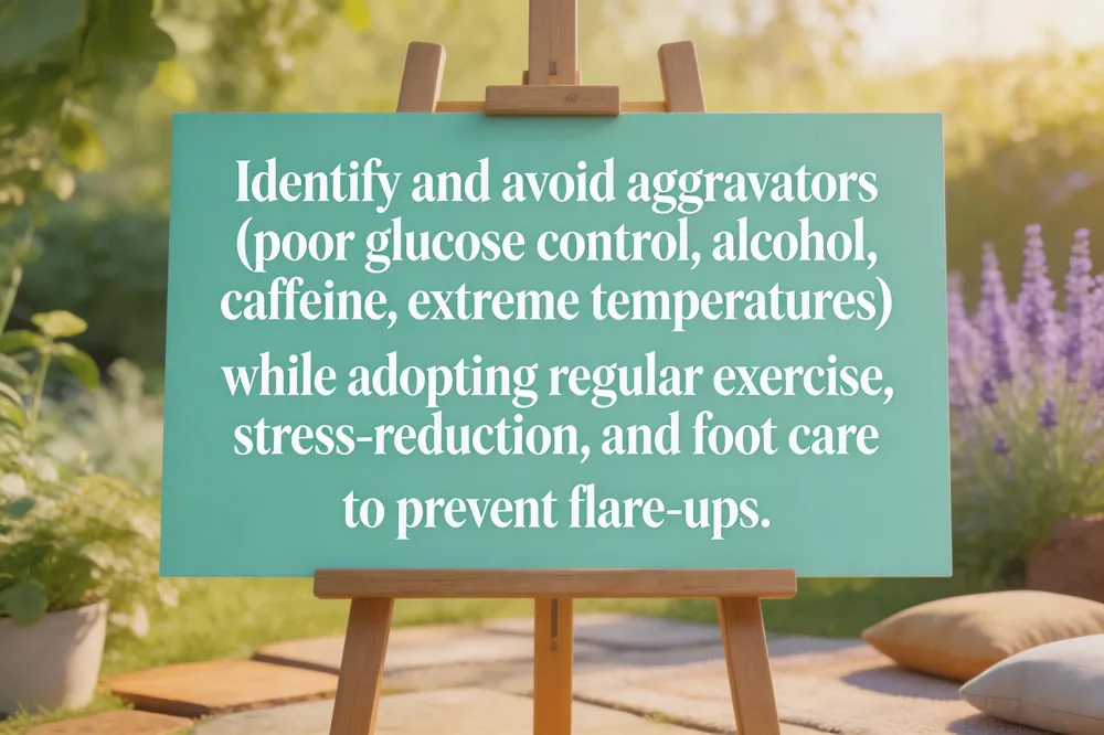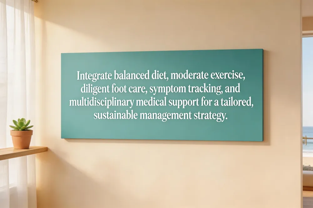 Living with neuropathy requires daily actions that protect nerves and lessen pain. Key take‑aways for everyday practice include: moderate low‑impact exercise (walking, swimming, cycling) to boost circulation; a balanced, anti‑inflammatory diet rich in B‑vitamins, omega‑3s, whole grains, fruits and vegetables; strict blood‑glucose control for diabetic patients; quitting smoking and limiting alcohol; diligent foot inspection and supportive footwear; and stress‑reduction techniques such as meditation or yoga. Ongoing monitoring is essential—regular appointments let clinicians track symptom progression, adjust medications, and reinforce lifestyle goals. Collaboration with pain‑medicine specialists ensures that non‑pharmacologic strategies (exercise, nutrition, mind‑body practices) are integrated with evidence‑based pharmacotherapy, creating a personalized, multidisciplinary plan that maximizes function and quality of life. Patients should also document triggers to guide future adjustments.