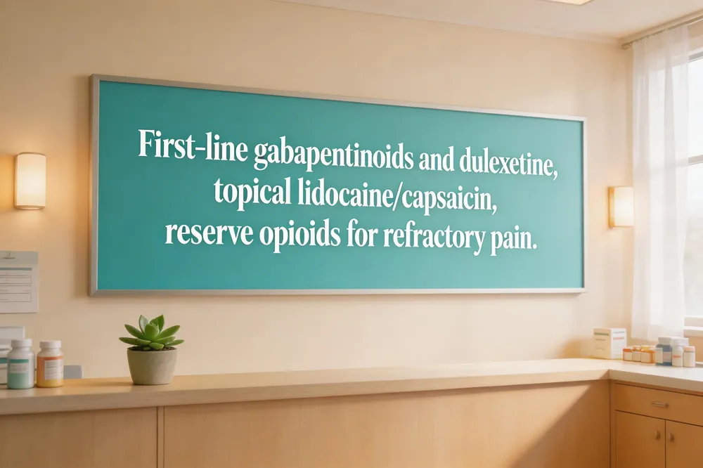 Neuropathy medication focuses on relieving nerve pain while treating any underlying cause. First‑line anti‑seizure agents such as gabapentin and pregabalin block pain signals and are usually started at low doses and titrated upward. Antidepressants—duloxetine (an SNRI) and tricyclics like amitriptyline—enhance pain‑modulating neurotransmitters and are effective for many patients. Topical lidocaine patches or 8% capsaicin creams provide localized relief with minimal systemic exposure. Over‑the‑counter NSAIDs (ibuprofen, naproxen) and acetaminophen can help mild symptoms but often fall short for neuropathic pain. Opioids or tramadol are reserved for severe, refractory pain after other options have failed, given their risk of dependence and side‑effects.