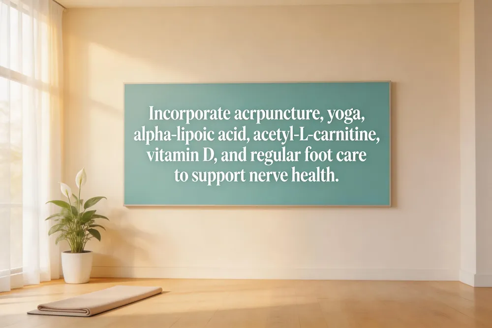 Key supplements with emerging evidence include alpha‑lipoic acid, acetyl‑L‑carnitine, vitamin D, and B‑complex vitamins. Alpha‑lipoic acid and acetyl‑L‑carnitine may support mitochondrial function and nerve regeneration; vitamin D and B‑vitamins address deficiencies that can worsen neuropathic symptoms.