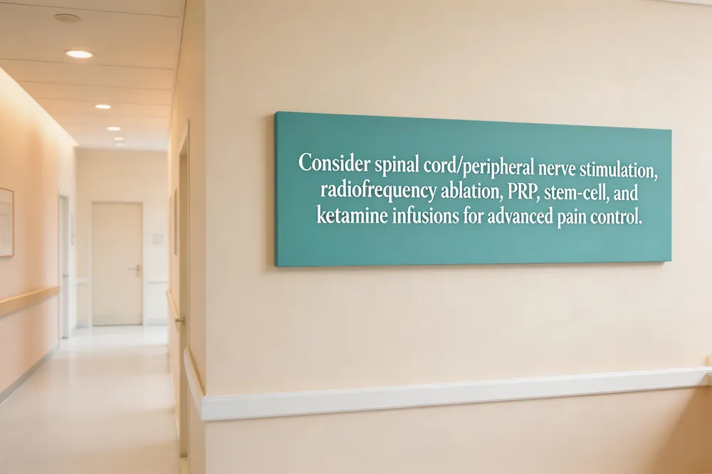 Modern neuropathy care blends neuromodulation, targeted injections, and regenerative medicine. Spinal cord stimulation and peripheral nerve stimulation deliver low‑level electrical pulses to interrupt pain signals, while radiofrequency ablation, nerve blocks, and epidural steroid injections reduce inflammation and deactivate pain‑generating fibers. Regenerative options such as platelet‑rich plasma (PRP), stem‑cell therapy, and ketamine infusions aim to promote nerve healing and reset abnormal pain pathways. Specialized clinics in Los Angeles provide these services: the California Pain Institute and Cedars‑Sinai Pain Management in Beverly Hills offer comprehensive medication management, epidural injections, and neuromodulation implants. In Torrance, the Torrance Memorial Physician Network Pain Management clinic delivers radiofrequency ablation, nerve blocks, and ketamine infusions, while the California Pain Institute’s Torrance location focuses on neuropathy with injections, physical therapy, and orthotics. The Pain & Wellness Center integrates acupuncture, massage, and nutrition counseling for a holistic approach. For local holistic care, the California Pain Institute’s integrative team includes acupuncturists, chiropractors, and dietitians. Pacific Pain Clinic in Irvine, led by Dr. Cyrus Sedaghat, provides interventional and conservative treatments for back, neck, and joint pain, with flexible office hours and broad insurance acceptance.