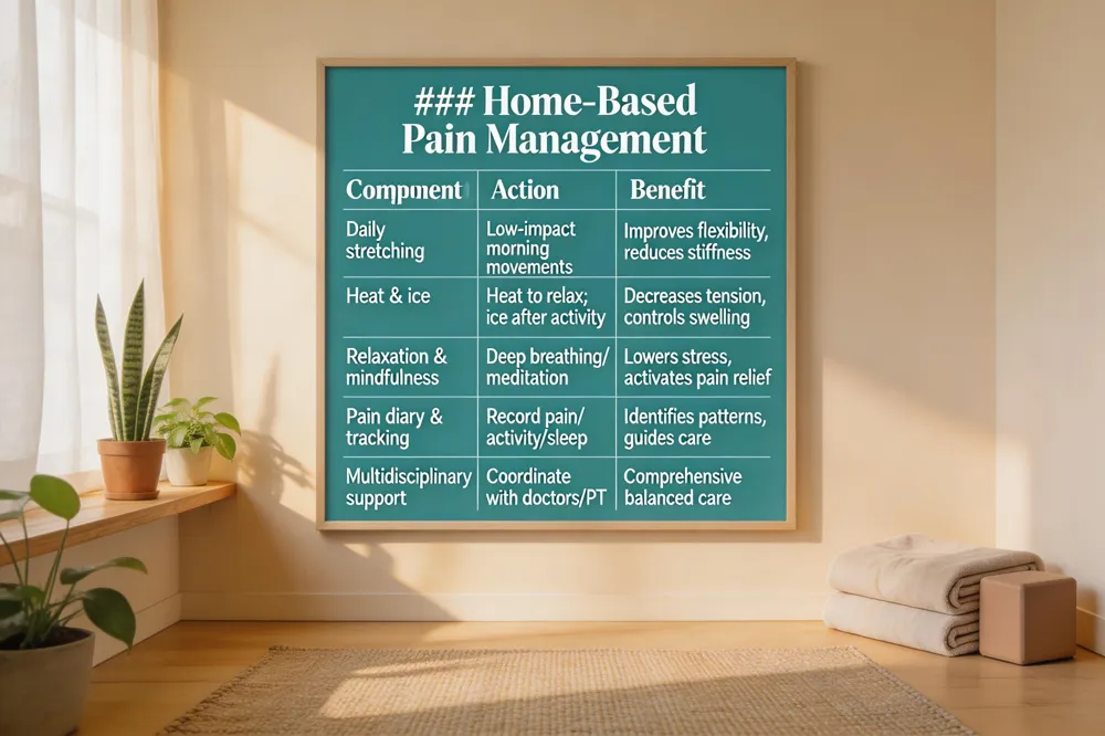 | A successful home‑based program blends gentle movement, self‑care tools, relaxation techniques, and systematic tracking. |