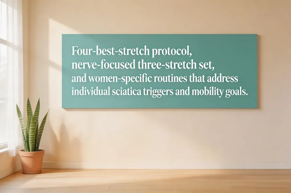Women may benefit from a routine that includes a glute bridge, piriformis stretch, kneeling hip‑flexor stretch, and seated hamstring stretch. The glute bridge strengthens the pelvis, while the piriformis stretch releases tension in the muscle that often irritates the nerve. Combine these with the core‑stabilizing Bird‑Dog or Cat‑Cow flow for balanced support. All stretches should be performed slowly, held for 20‑30 seconds, and repeated twice a week or daily if comfortable. Stop any movement that increases pain and seek professional guidance if symptoms persist.