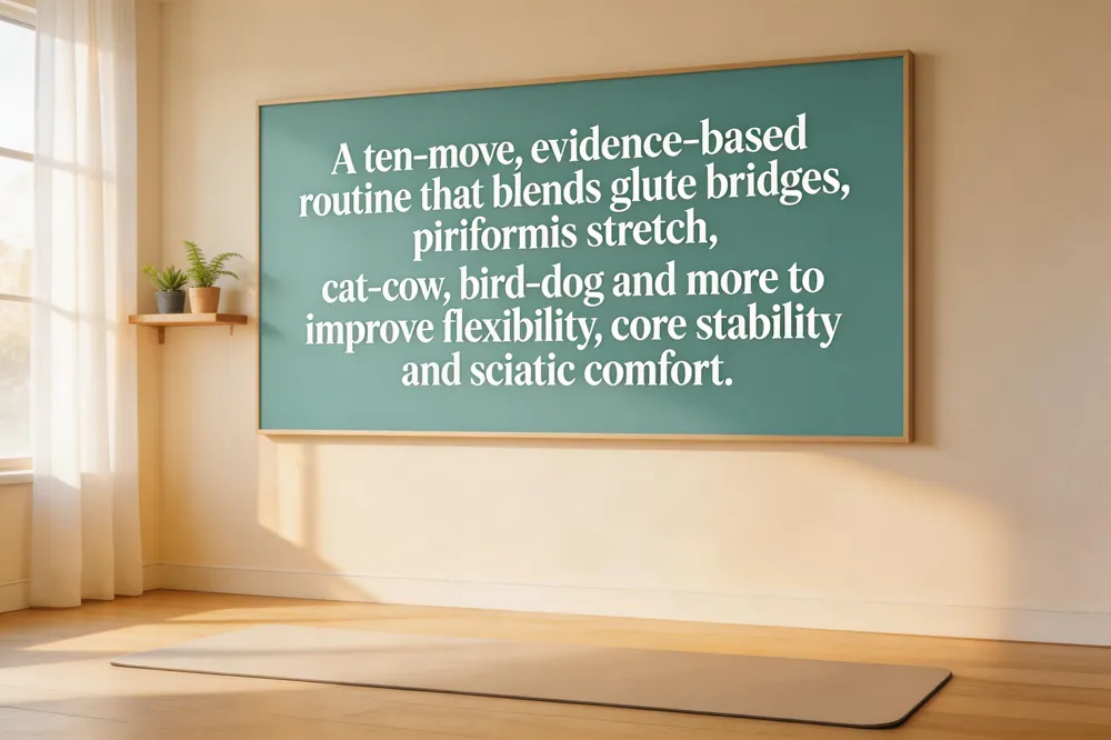 The most effective routine blends flexibility (piriformis, hamstring, knee‑to‑chest) with strengthening (bird‑dog, glute bridge) to restore mobility, reduce nerve irritation, and prevent future flare‑ups. Stop any exercise that increases sharp pain and consult a pain‑medicine specialist for personalized guidance.