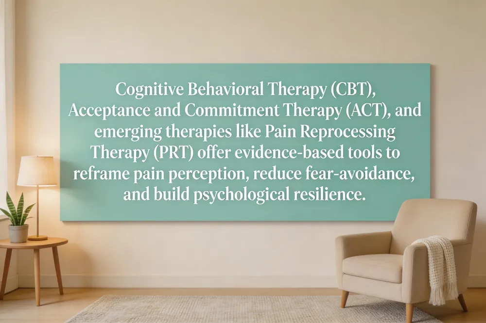 | Pain Reprocessing Therapy (PRT) | Reinterpreting pain signals | Somatic tracking, safety reappraisal, psychoeducation | Targets brain's pain processing pathways |