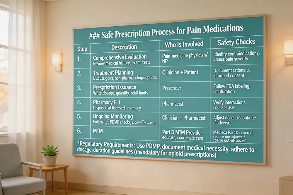 Effective pain control begins with a thorough evaluation and a clear prescription process. A qualified pain‑medicine physician will review your medical history, perform a physical exam, and order any needed diagnostic tests. During this visit you will discuss pain severity, functional impact, and prior therapies so the clinician can design a safe medication plan—ranging from NSAIDs and muscle relaxants to, when justified, opioids under strict monitoring. The prescription is then filled at a licensed pharmacy, with dosage instructions and refill limits strictly followed. Regular follow‑up appointments are essential to assess relief, monitor side effects, and adjust the regimen.
