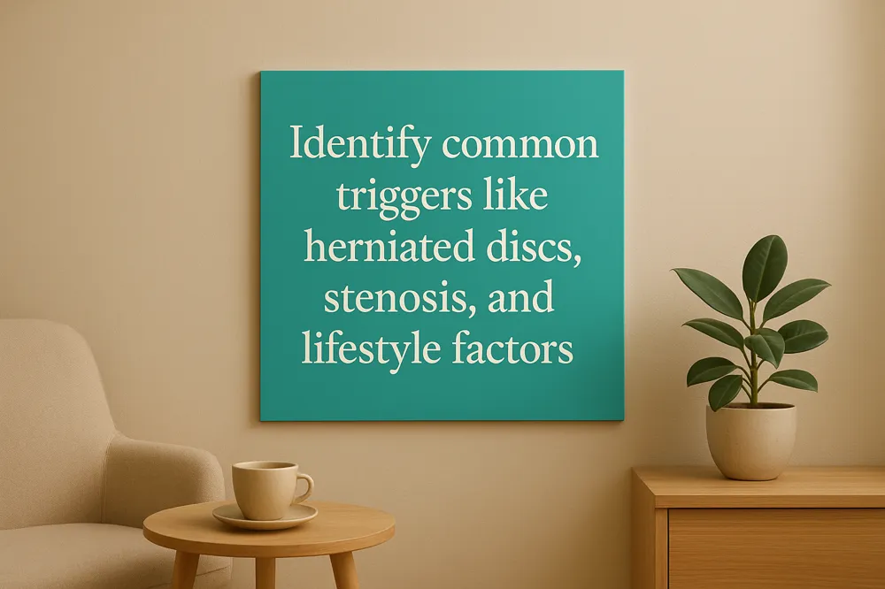 Sciatica is most commonly triggered by conditions such as herniated discs, spinal stenosis, and degenerative changes in the spine, often worsened by factors like excess weight, poor posture, and prolonged sitting. Early recognition of symptoms—sharp, burning pain radiating down the leg, accompanied by numbness or muscle weakness—is critical for effective intervention.