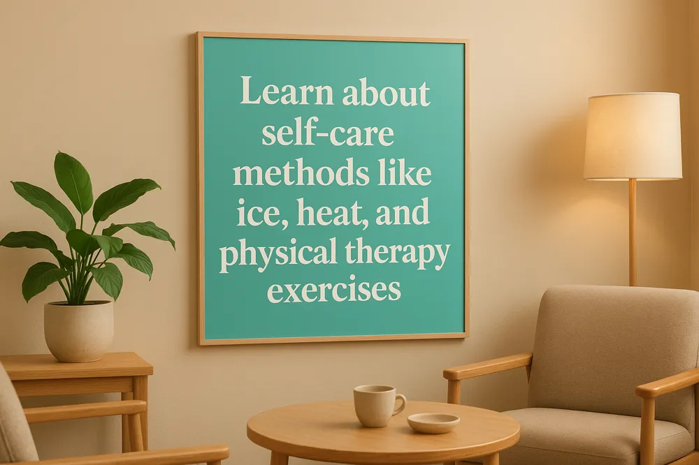 Initial self-care methods including ice, heat, NSAIDs, and activity modifications